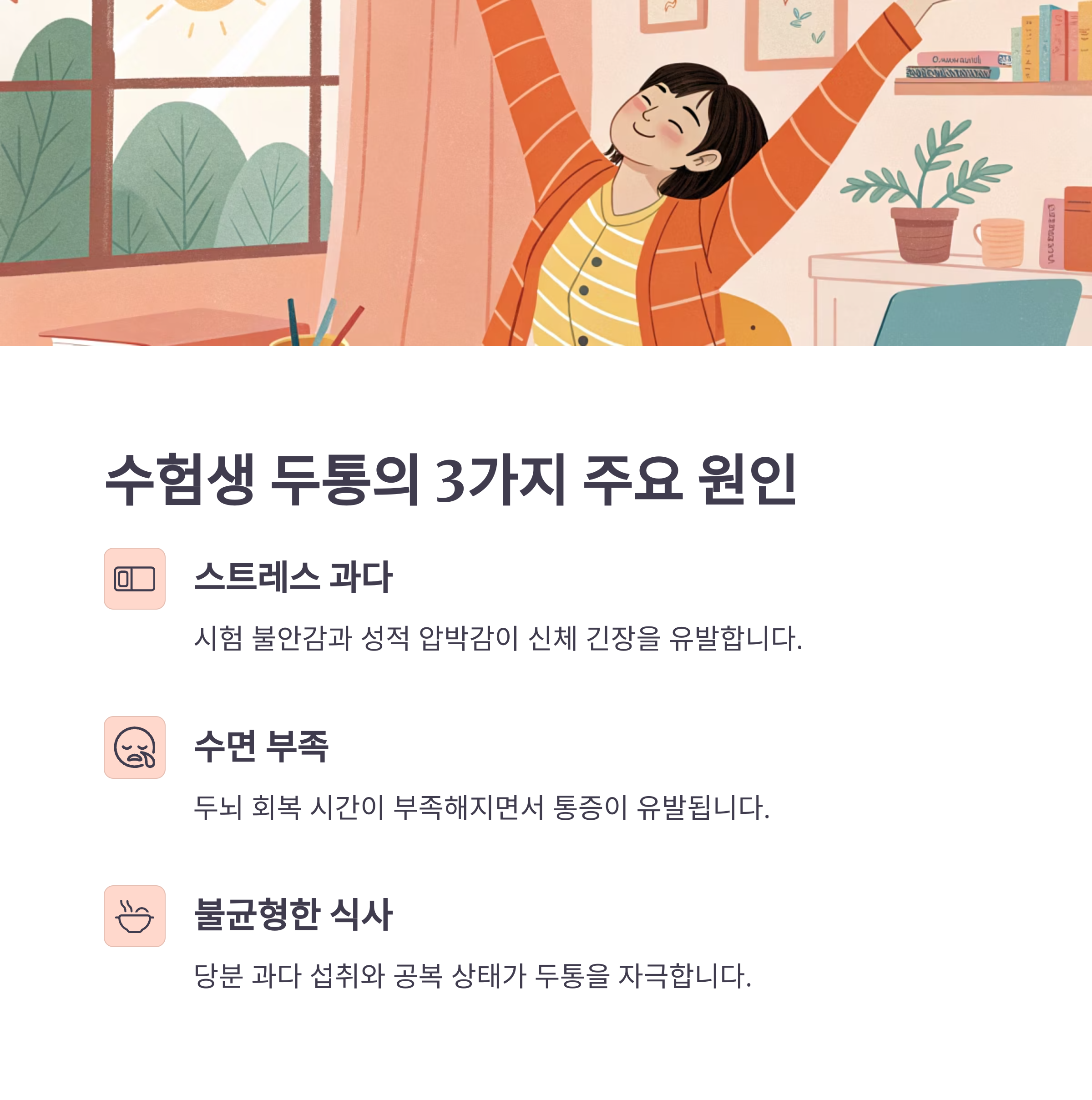두통 원인, 수험생 집중력, 공부 습관, 시험 스트레스, 공부 두통 해결, 포모도로 집중법, 수험생 식단, 두통 예방 음식, 공부 효율 높이는 법, 수험생 건강관리